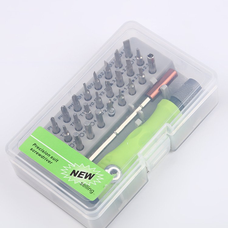 [English Version] Master your DIY repairs with this 32-in-1 Precision Screwdriver Set, a versatile and essential toolkit for every household and professional workshop. This set features 30 high-quality interchangeable bits, including Phillips, Slotted, Torx, and Hex, specifically designed to handle delicate tasks like repairing smartphones, laptops, watches, eyeglasses, and small appliances.